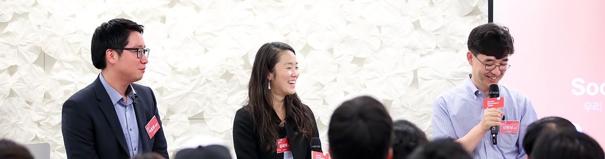 | 신현상 | 두 분 모두 명쾌한 답변에 감사드립니다. 지난 2월 아쇼카 익스체인지 컨퍼런스에 갔었는데, 그때 기조연설을 한 분이 말씀하신 게 기억에 남더군요. “4~5년 전만 해도 우리가 사회혁신을 얘기하면 소셜 벤처를 만들고 창업하는 것을 교육 목적으로 생각했다. 그런데 이제는 그게 아니라 정치든 언론이든 경제든 문화든 굉장히 다양한 사회 분야에서 이런 사회혁신의 사고방식을 길러내는 것이 중요해졌다. 문제를 해결하려는 의지를 가지고 다른 사람들과 같이 협력해서 이를 해결해나갈 수 있는 사람을 길러내는 것, 또 그들이 다시 사회에 나가 새로운 문제를 해결하는 것이 사회 혁신의 중심이 될 것이다”라고요. 우리 모두가 이런 변화를 같이 만들어가면 좋을 것 같습니다.